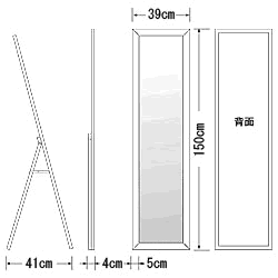 ■仕様 商品名 国産シンプルスタンドミラー カラー ブラウン サイズ 幅39×奥行4〜41×高さ150(cm) フレーム幅 約4cm 重さ 約5kg 材質 天然木(栂)、3mmガラス鏡 塗装 ラッカー樹脂塗装 PL製造物賠償責任保険付き